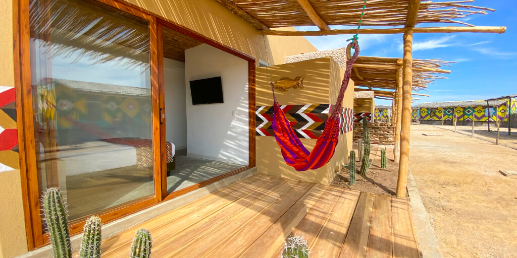 Descubre un paraíso donde el desierto se encuentra con el mar. Relájate en nuestros bungalows frente a la playa y vive la cultura Wayuu.